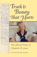 There is much to love and enjoy in the poetry of Elizabeth M. Come, as you are about to discover. She was a woman who paid attention to the world, both outside her windows, and within. Her poems are filled with inner visions, of peace and aliveness and God, as well as a sense of the mystical wonders of nature, big as the sky, tiny as "the lace-making spider." She often reminds me of Emily Dickinson, and yet has a very specific charm all her own. These poems are filled with a sense of love and hurt, sensuality, creation, God and romantic love, animals and the soul, sweetness and anger, and a fierce social conscience....